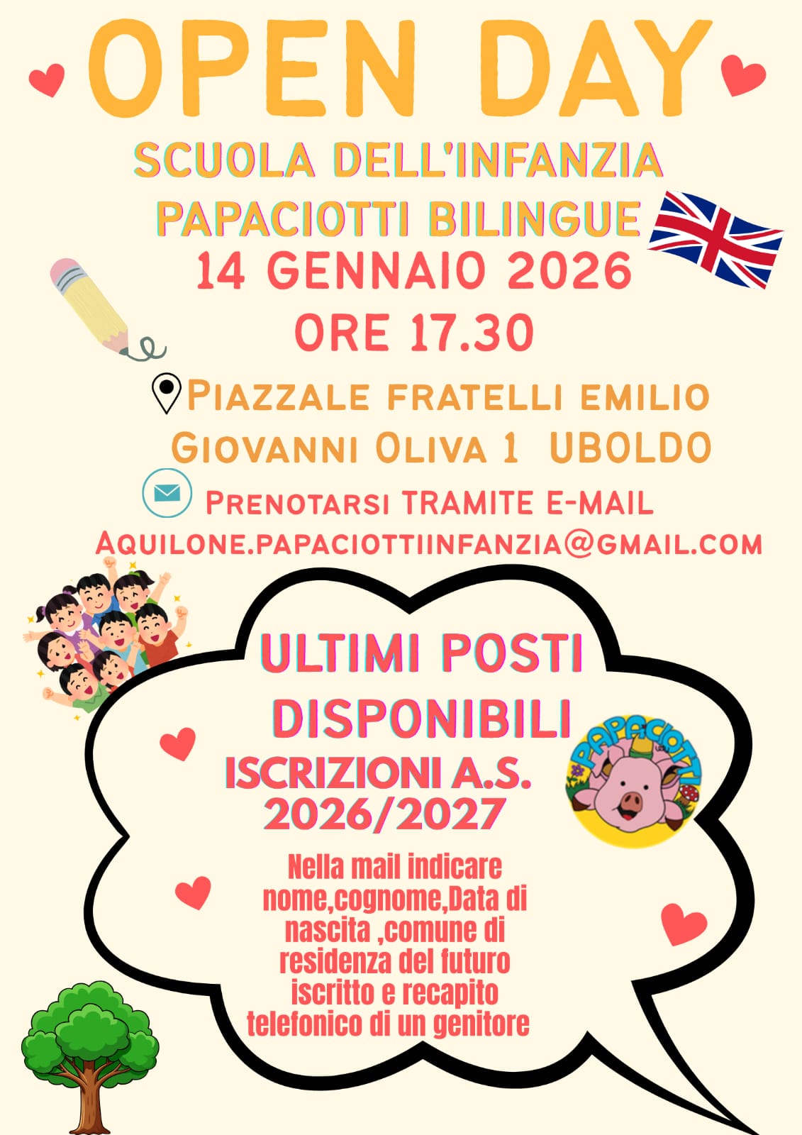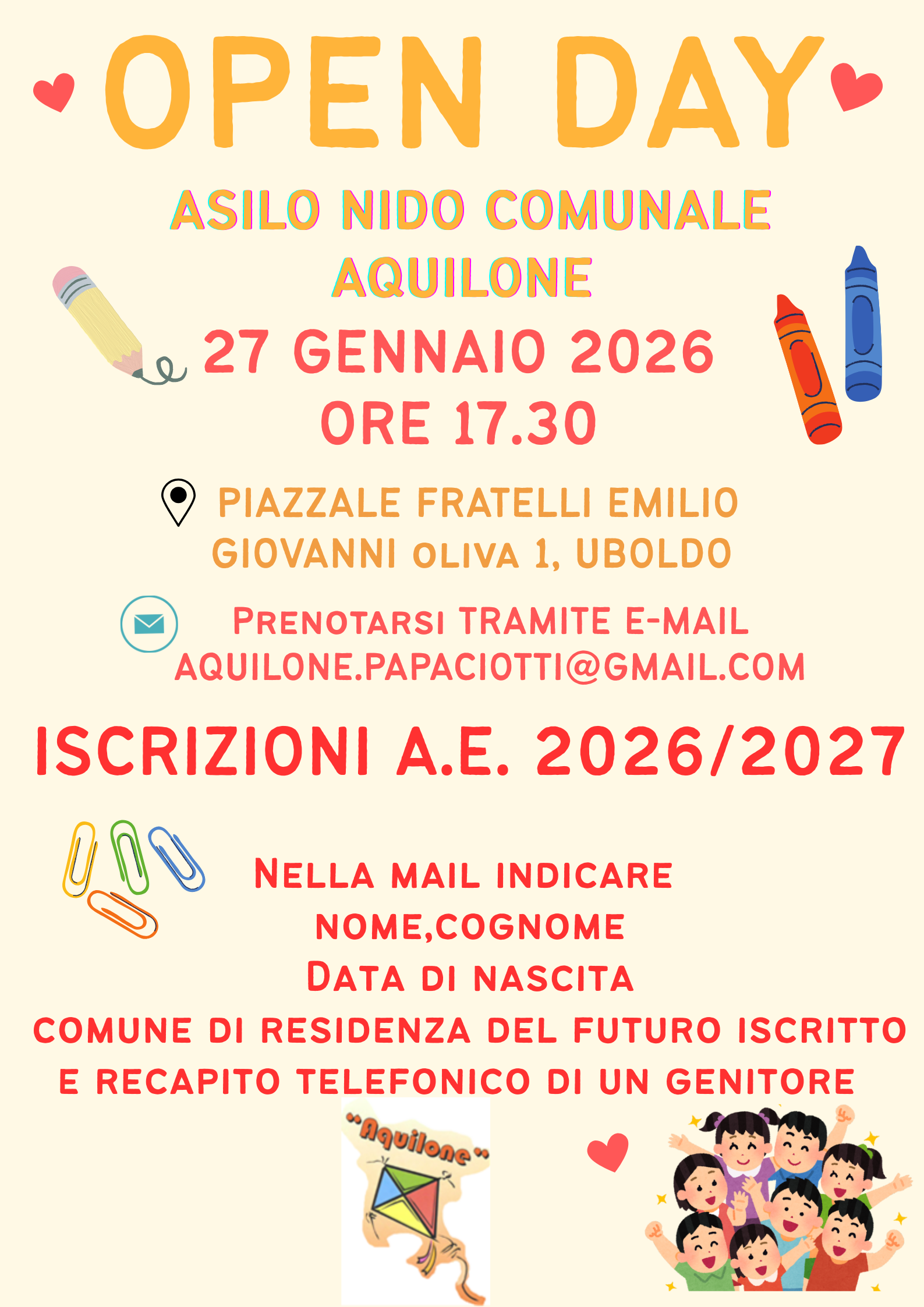 Nella mail indicare nome, cognome, data di nascita e comune di residenza del futuro iscritto e recapito telefonico di un genitore.