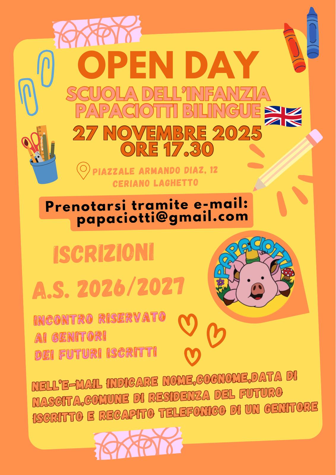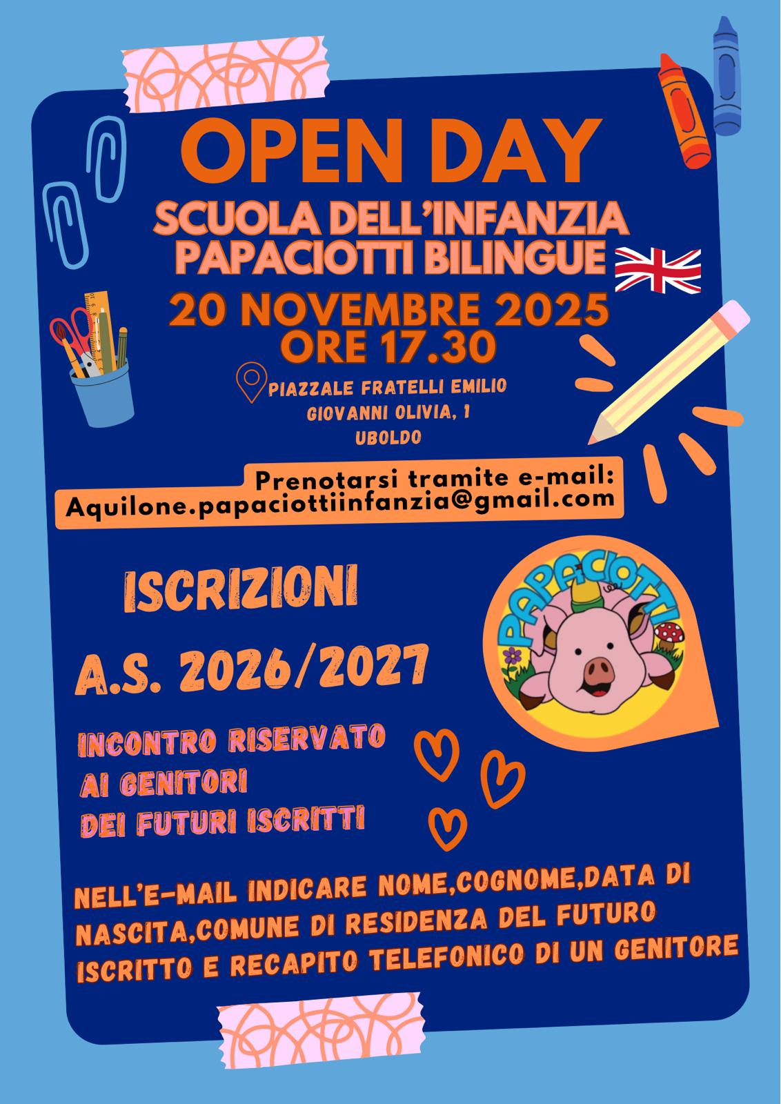 Nella mail indicare nome, cognome, data di nascita e comune di residenza del futuro iscritto e recapito telefonico di un genitore.